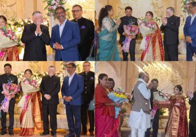 राज्यपाल के बेटे की रिसेप्शन पार्टी में पत्नी संग पहुंचे CM हेमंत सोरेन, नवविवाहित जोड़े को दिया आशीर्वाद