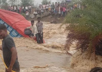 श्योपुर में खिरखिरी गांव की नदी उफान पर,नाला पार कर रही ट्रैक्टर-ट्रॉली बही