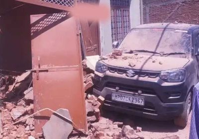 शिवपुरी के पिछोर में एक शिक्षक के घर पर आसमान से गिरी कोई वस्तु की वजह से दो कमरे ध्वस्त