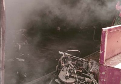 नगर के कृषि उपज मंडी प्रांगण स्थित टीन शेड से बने अनाज गोदाम में अचानक लगी आग, 100 क्विंटल सोयाबीन व 8 बाइक खाक
