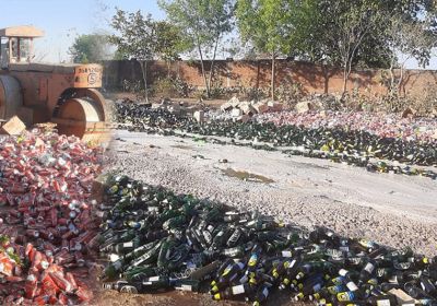 आबकारी विभाग ने 1.81 करोड़ की शराब पर चला का रोड रोलर, 4800 पेटी शराब और बीयर को किया नष्ट