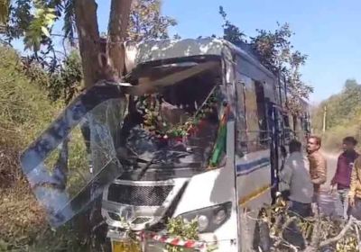 पेड़ से टकराई तेज रफ्तार बस, इस हादसे में केबिन में बैठे यात्री गिरे, एक दर्जन से ज्यादा घायल, 3 की हालत गंभीर