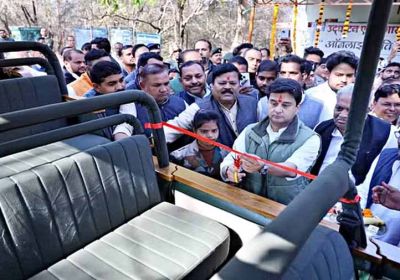 माधव नेशनल टाइगर रिजर्व में टाइगर सफारी वाहन को केंद्रीय मंत्री सिंधिया दिखाई हरी झंडी