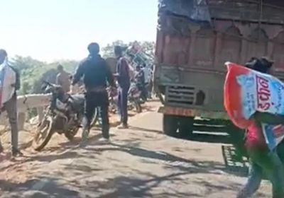 पन्ना में वाशिंग पाउडर से भरा ट्रक पलटते ही मची लूट, मदद के लिए चिल्लाता रहा ड्राइवर