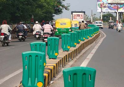 इंदौर के शास्त्री ब्रिज पर नया प्रयोग, लोहे के हटाकर अब प्लास्टिक के डिवाइडर लगाए