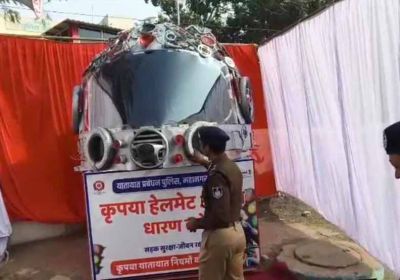 इंदौर पुलिस का अनोखा अभियान: वेस्ट मटेरियल से 6-7 फीट ऊंचा हेलमेट चौराहे पर सजाया जाएगा