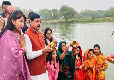 सीएम उज्जैन पहुंचे छठ के आखिरी दिन, विक्रम सरोवर घाट पर सूर्य को अर्घ्य अर्पित