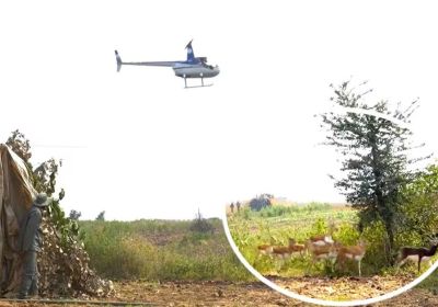 देश में पहली बार शाजापुर में अनोखी पहल, हेलीकॉप्टर से हांका कर हिरणों को पकड़ा गया