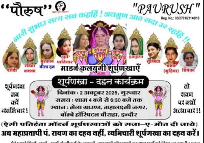 26 Sep, 2025 03:42 PM IST | SAMIKSHASAGAR.COMइंदौर इंदौर के महालक्ष्मी नगर मेला ग्राउंड में दशहरे के अवसर पर आयोजित होने वाले शूर्पणखा...