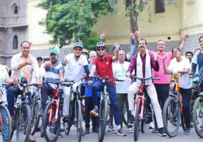 इंदौर में 'नो कार डे' की पहल, साइकिल से ऑफिस पहुंचे अफसर और नेता