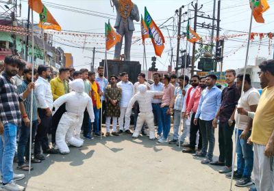 भाजपा युवा मोर्चा ने आज अंबेडकर चौराहा पर सोनिया गांधी और राहुल गांधी का पुतला दहन किया गया