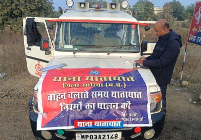 राष्ट्रीय सड़क सुरक्षा माह’’ के तहत उमरिया पुलिस द्वारा चलाया जा रहा जागरूकता अभियान