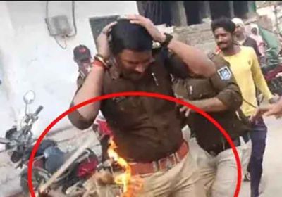 विजयवर्गीय के विरोध में कांग्रेस का प्रदर्शन बेकाबू, पुतले की जगह पुलिसकर्मी झुलसा