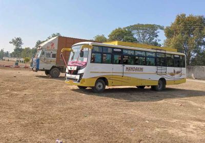 बस की छत पर सवारी बैठाकर परिवहन करने वाले मंदाकिनी बस के चालक पर हुई कार्यवाही