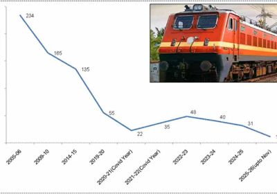 रेल सुरक्षा रिकॉर्ड सुधार में वृद्धि : वार्षिक दुर्घटनाएं 2004-14 के औसत 171 से घटकर 2025-26 में अब तक 11 रह गई हैं