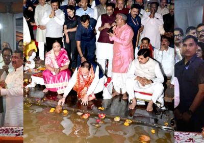 केंद्रीय मंत्री नड्डा और मुख्यमंत्री डॉ. यादव माँ नर्मदा की महाआरती में हुए शामिल