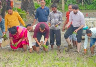 मंडला में कलेक्टर और मंत्री उइके का दिखा खास अंदाज, रोपे धान के पौधे,कुम्भार सशक्तिकरण जागरूकता शिविर में हुए शामिल