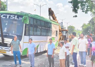 नगर निगम द्वारा सार्वजनिक सड़क पर खड़ी निजी बसों को हटाने का चला अभियान