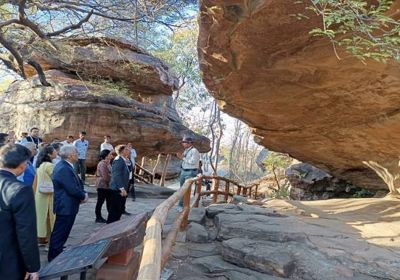 वित्त आयोग के अध्यक्ष एवं सदस्यों ने विश्व धरोहर भीम बैटका का किया भ्रमण