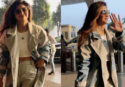 विमानतल पर स्टाइलिश लुक में नजर आईं शिल्पा शेट्टी, नाम लिखा बैग किया फ्लॉन्ट
