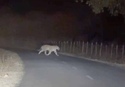 अमरकंटक में सड़क पर दिखा बाघ, गुजरते शिक्षक ने मोबाइल में कैद किया रोमांचक नज़ारा