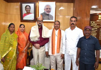 राज्यपाल श्रमेन डेका से राष्ट्रपति पुरस्कार प्राप्त ढोकरा शिल्प कलाकारों ने की सौजन्य भेंट