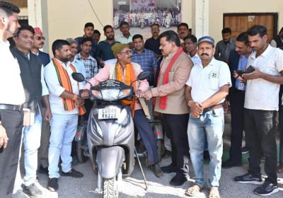 रायपुर : दिव्यांग नेमी सिंह को उपमुख्यमंत्री शर्मा ने प्रदान की पेट्रोल चलित स्कूटी