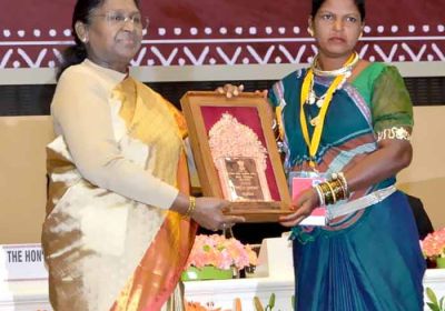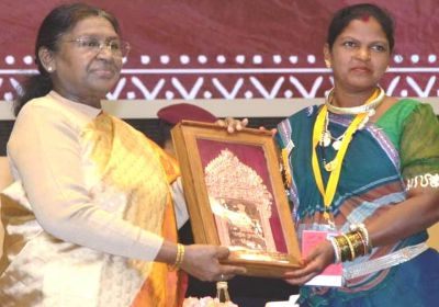 रायपुर : राष्ट्रपति द्रौपदी मुर्मु के हाथों हीराबाई झरेका बघेल राष्ट्रीय हस्तशिल्प पुरस्कार से सम्मानित