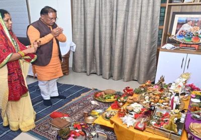 रायपुर : मुख्यमंत्री विष्णु देव साय ने की गोवर्धन पूजा, प्रदेश की सुख-समृद्धि और खुशहाली की कामना की