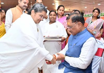 10 Aug, 2025 01:25 PM IST | SAMIKSHASAGAR.COMरायपुर, रक्षाबंधन के शुभ अवसर पर प्रजापिता ब्रह्मकुमारी ईश्वरीय विश्वविद्यालय, रायपुर की संचालिका ब्रह्मकुमारी सविता बहन...