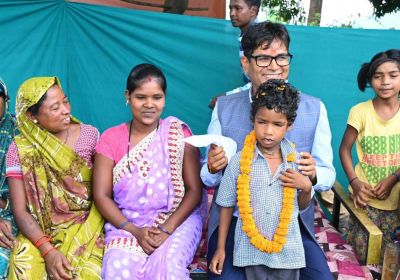 रायपुर : बिरहोर परिवार के गृह प्रवेश में पहुंचे वित्त मंत्री ओ.पी.चौधरी, परिवार के नन्हे बच्चे से कटवाया फीता