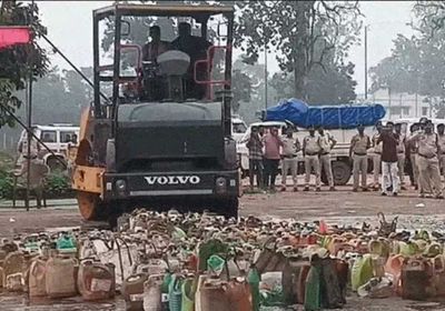कोरबा में 10 हजार लीटर शराब पर चला बुलडोजर, 16 लाख की अवैध शराब नष्ट, 9 सालों से जब्त देसी-विदेशी शराब को हटाया