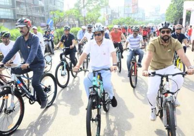 विश्व साइकिल दिवस पर मंत्री टंकराम वर्मा ने चलाई साइकिल