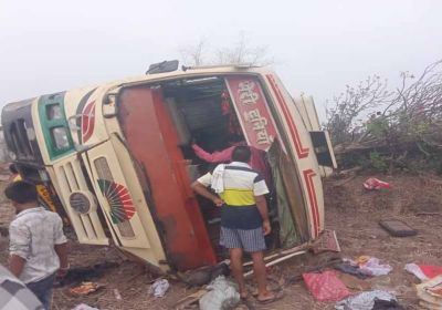 तेज रफ्तार यात्री बस अनियंत्रित होकर पलटी , 20 से अधिक यात्री घायल