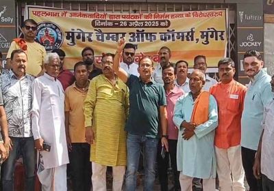 26 Apr, 2025 05:50 PM IST | SAMIKSHASAGAR.COMमुंगेर जम्मू-कश्मीर के पहलगाम में हुए पर्यटकों की हत्या के विरोध में मुंगेर बाजार आज पूरी...