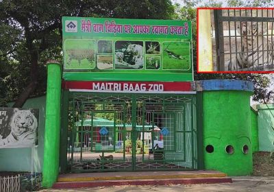 मैत्री बाग जू में वन्यजीवों को तपिश से बचने व्यापक इंतजाम, सफेद शेरों के इनक्लोजर में पानी का छिड़काव