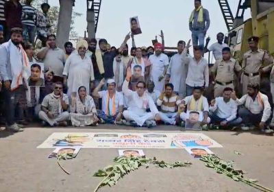 उपाध्याय के नेतृत्व में कुम्हारी टोल प्लाजा पर कांग्रेस का अनोखा प्रदर्शन