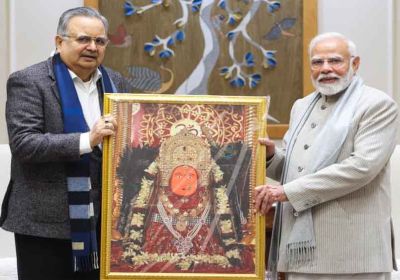 छत्तीसगढ़-विस अध्यक्ष डॉ रमन सिंह मिले PM मोदी से, मां बमलेश्वरी का छायाचित्र भेंटकर दिया न्योता