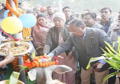 कृषि मंत्री नेताम ने गौशाला में शेड निर्माण कार्य का किया शिलान्यास और लोकार्पण