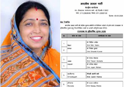3 Mar, 2026 05:35 PM IST | SAMIKSHASAGAR.COMरायपुर छत्तीसगढ़ से खाली होने वाली राज्यसभा सीट के लिए भारतीय जनता पार्टी ने वरिष्ठ महिला...