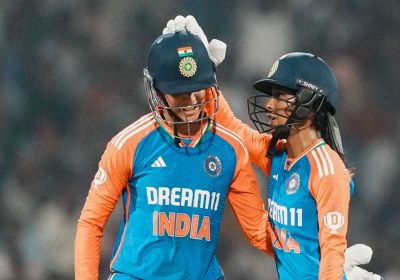 16 Jan, 2025 04:59 PM IST | SAMIKSHASAGAR.COMराजकोट प्रतिका रावल (154) और कप्तान स्मृति मंधाना (135) की तूफानी शतकीय पारियों के बाद दीप्ति...