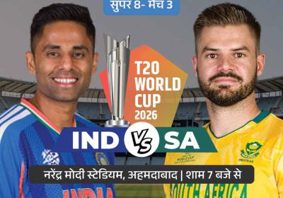 23 Feb, 2026 09:04 AM IST | SAMIKSHASAGAR.COMअहमदाबाद आईसीसी टी20 वर्ल्ड कप 2026 में भारतीय टीम को सुपर-8 मुकाबले में साउथ अफ्रीका के...