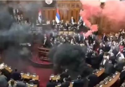 सर्बिया की संसद में भारी उत्पात मचाया, धुआंधार स्मोक ग्रेनेड और आंसू गैस के गोले फेंके