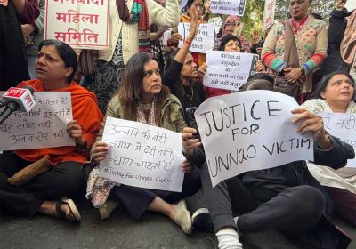 उन्नाव रेप केस: कुलदीप सेंगर की जमानत के खिलाफ दिल्ली हाईकोर्ट के बाहर महिलाओं का जोरदार प्रदर्शन