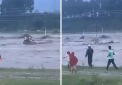 देहरादून में जल सैलाब का कहर: उफनती नदी में समा गया ट्रैक्टर, लोगों की मदद की गुहार