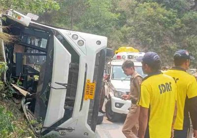 नई टिहरी-घनसाली मोटर मार्ग पर टिपरी से करीब 1.5 किमी आगे एक बस अनियंत्रित होकर पलटी, मचा हड़कंप