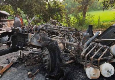 डीसीएम-डंपर की भिड़ंत के बाद भयानक आग, तीन की जिंदा जलकर मौत