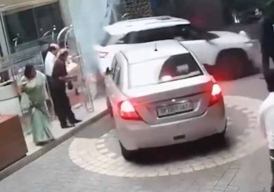 महिला अधिवक्ता की कार ने ली रफ्तार, होटल की दीवार तोड़ी — सीसीटीवी फुटेज वायरल