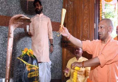 गोरखपुर में CM योगी आदित्यनाथ ने सावन शिवरात्रि के अवसर पर मानसरोवर मंदिर में रुद्राभिषेक किया