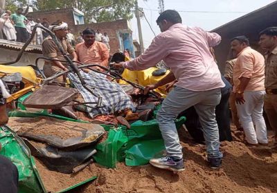 बालू उतारते समय एक डंपर असंतुलित होकर पास से गुजर रहे टेंपो पर पलट गया, तीन की मौत, तीन की हालत नाजुक